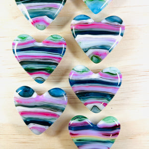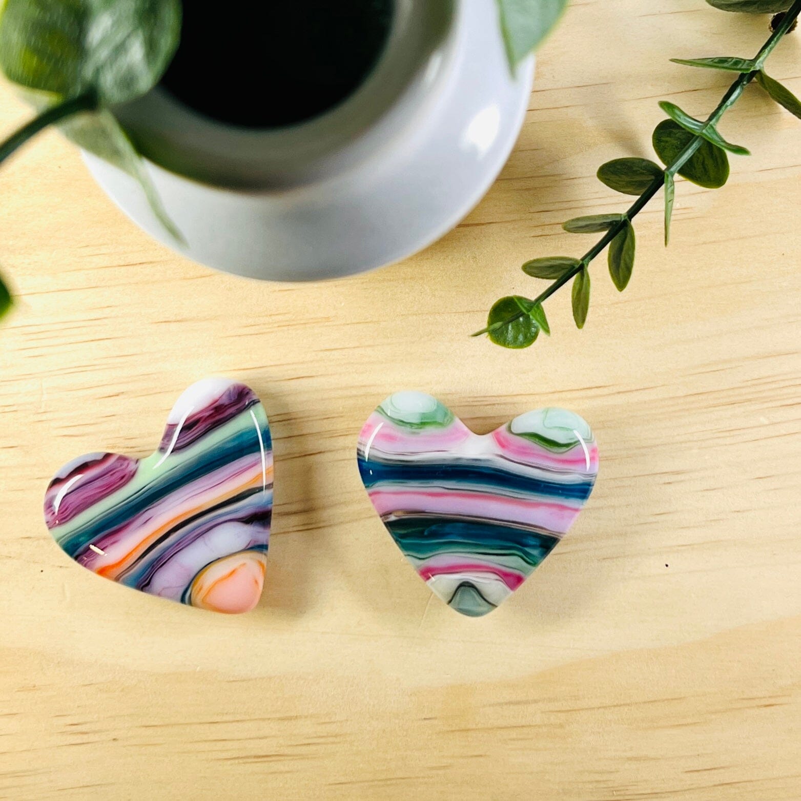 These beautiful fused glass pocket hearts are handmade from recycled scraps of glass.  Give them as a gift to show someone they are loved, or keep one in your pocket as a reminder that YOU are loved. Each heart is one of a kind and completely unique.
