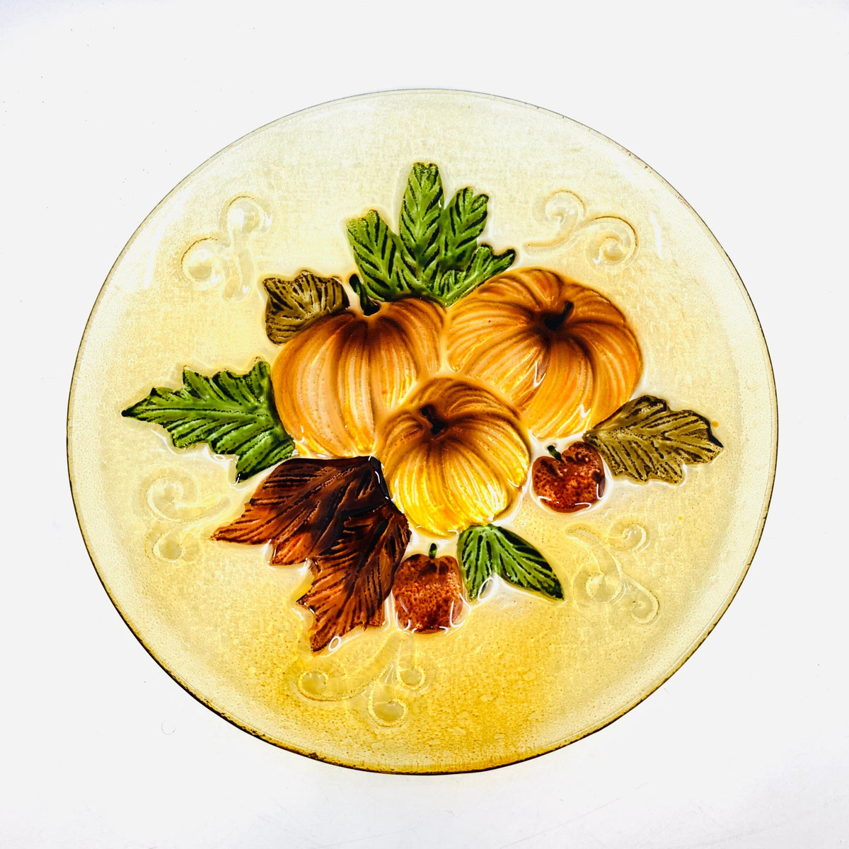 Glass Fusion Plate, Pumpkins and Leaves 16