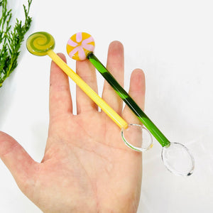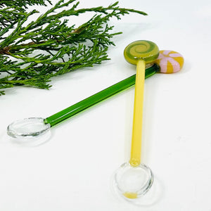 Enhance your kitchen’s holiday vibe with these delightful glass tea spoons. Each set includes two spoons adorned with delicate glass lollipop designs, adding a whimsical flair to your table. Ideal for gifting loved ones or impressing guests, they bring a festive and charming touch to every gathering this season. Perfect for tea or mixing a festive cocktail.