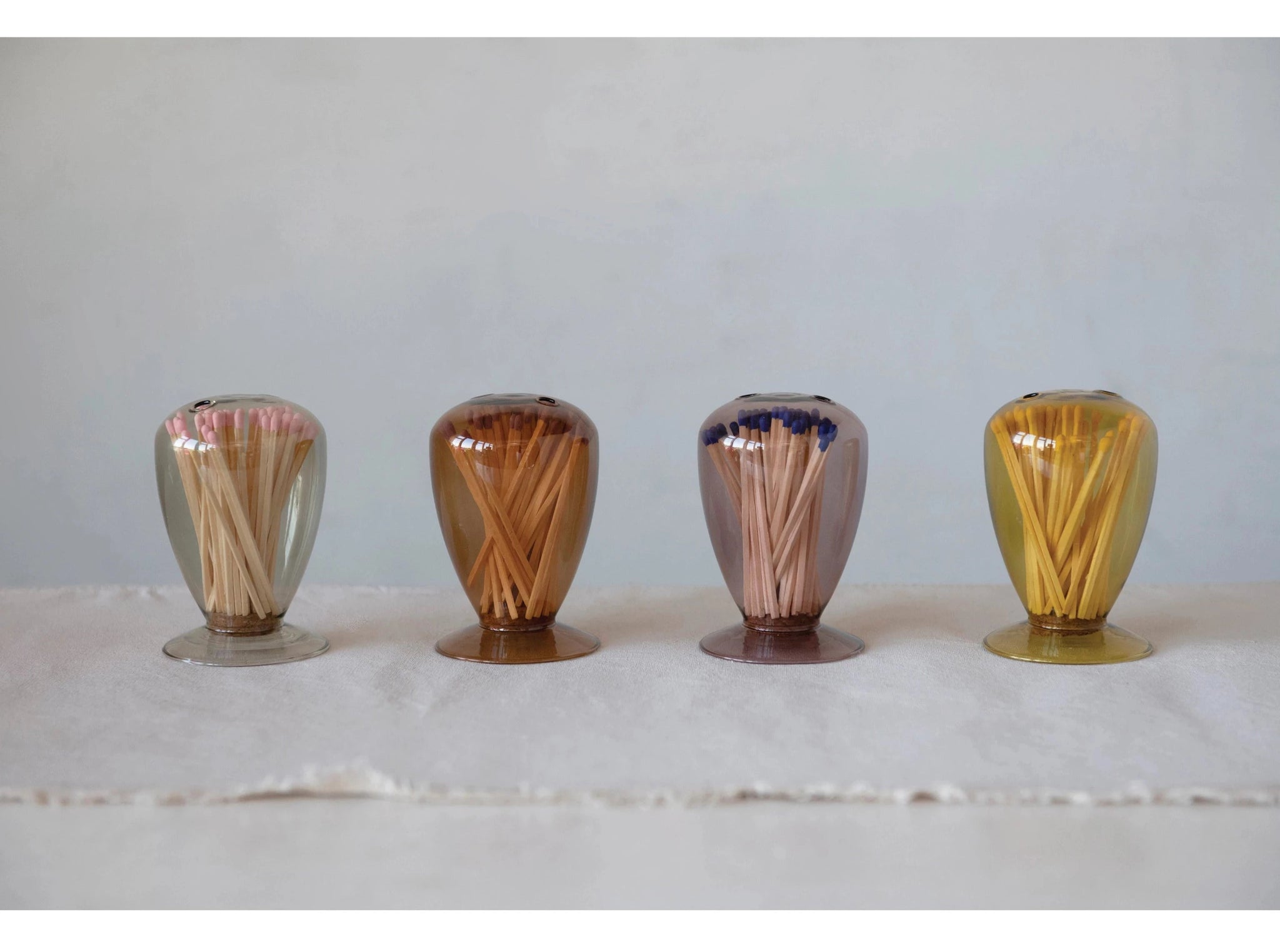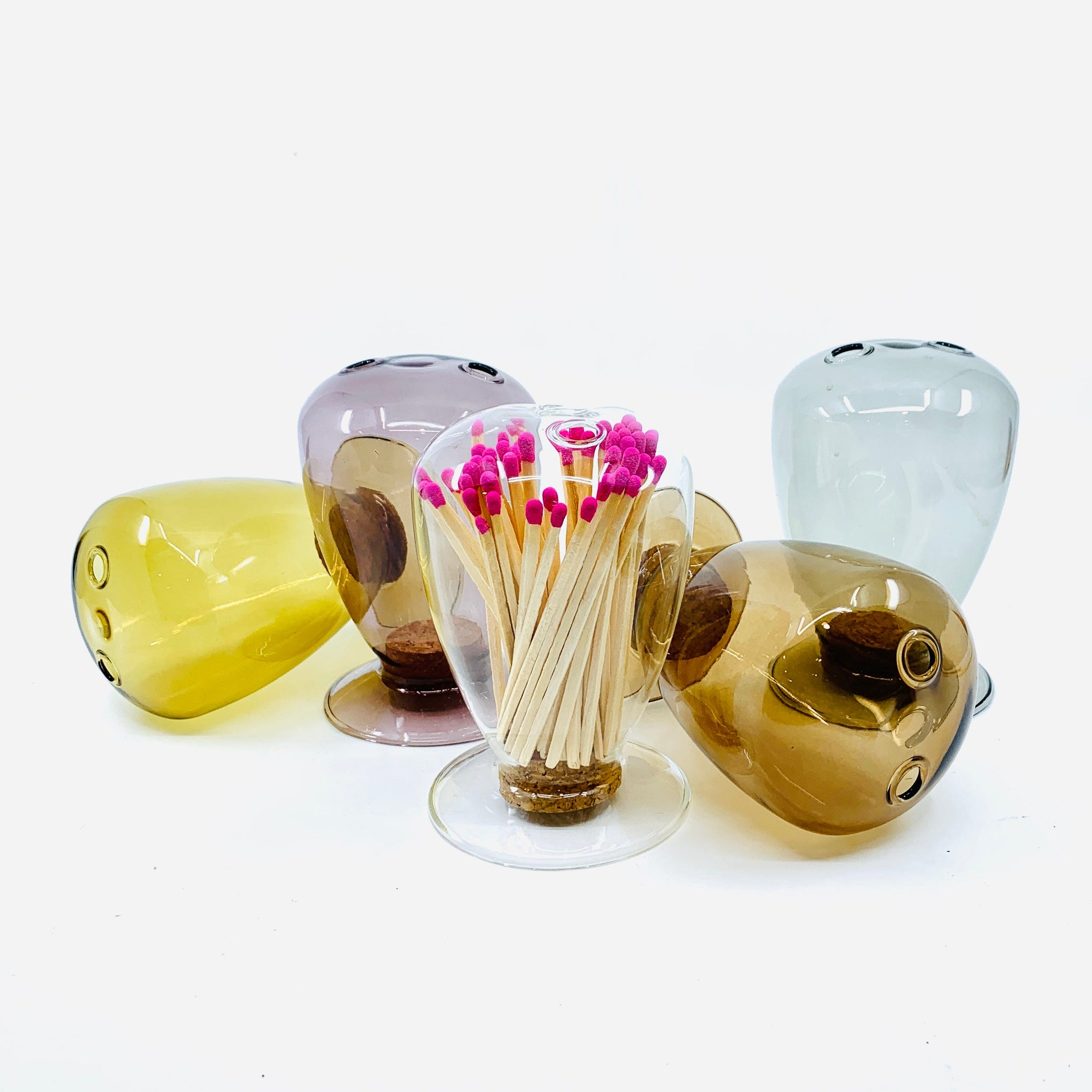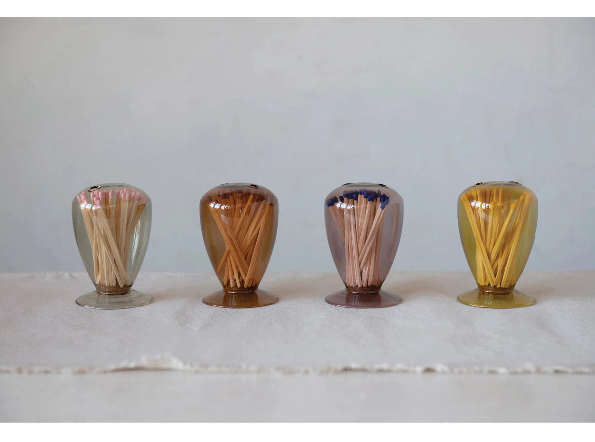 Designy Bottom Loaded Glass Match Holder, with included assorted matches