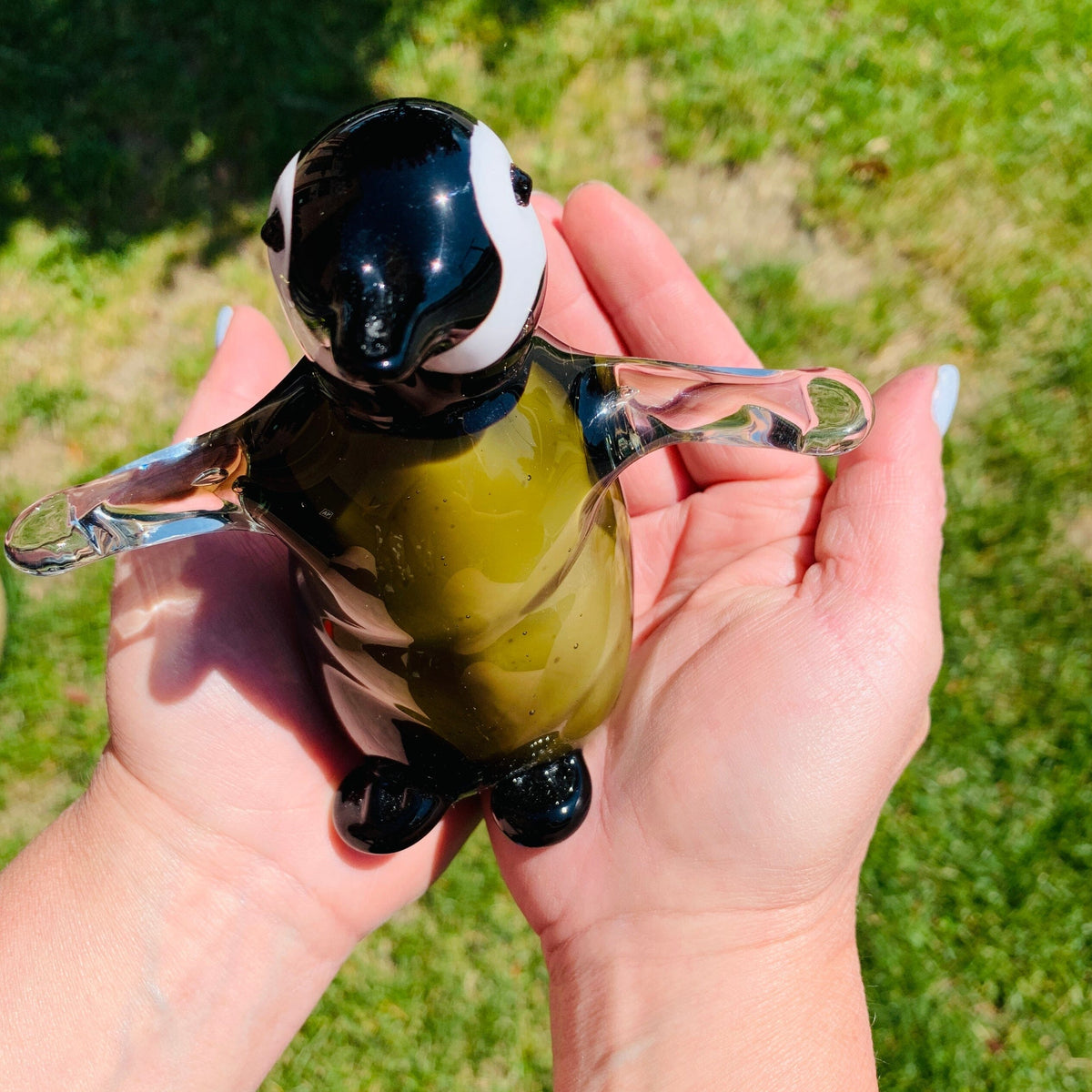 This chubby little Glass Penguin Paperweight serves as a charming desktop companion. Its eye-catching design makes it an aesthetically pleasing decor addition to any space.