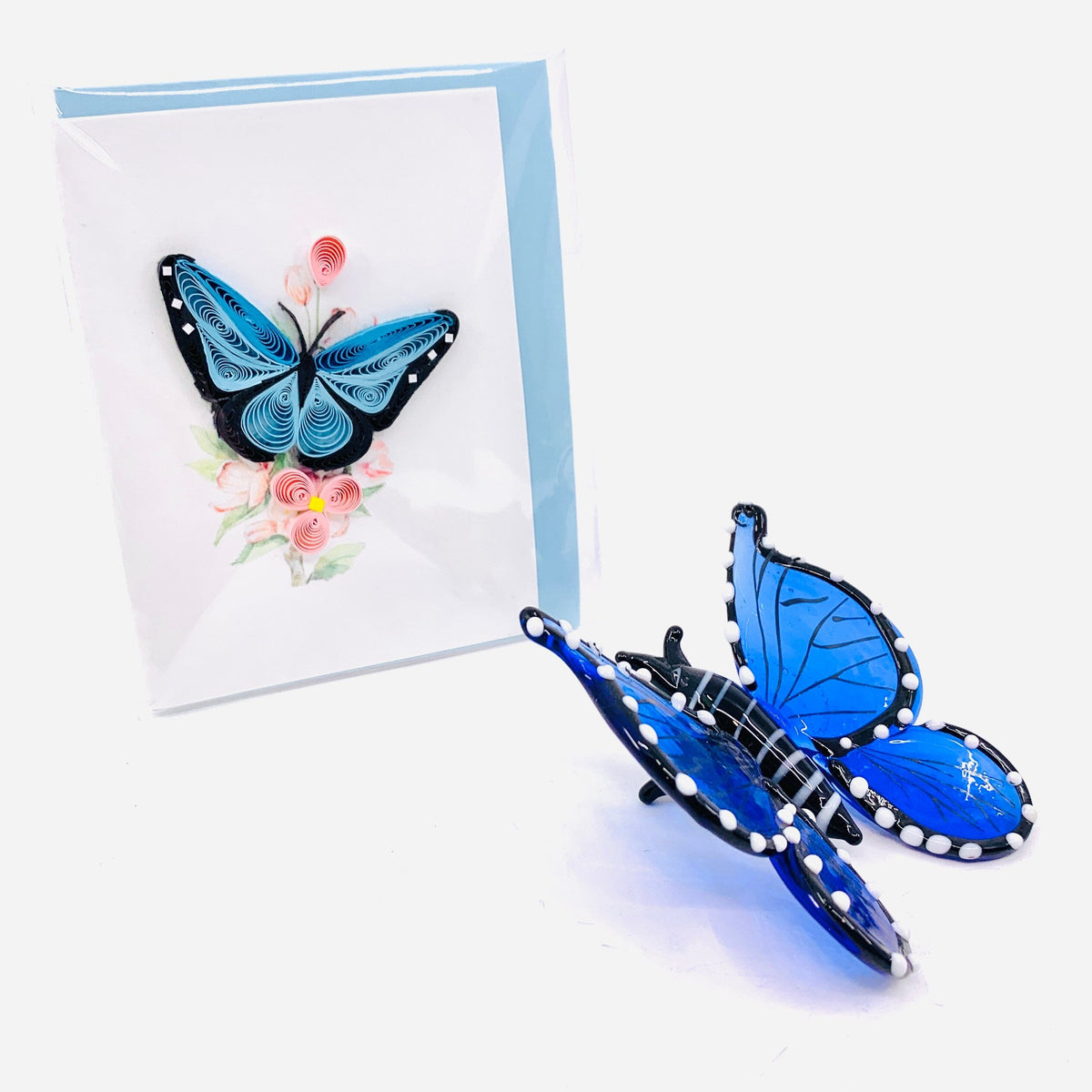 These beautiful handmade greeting card are a special piece art to give a loved one! Handmade here in MA we have paired each of our 8 deigns that we carry with a beautiful glass treasure to create stunning gift sets for any occasion.
