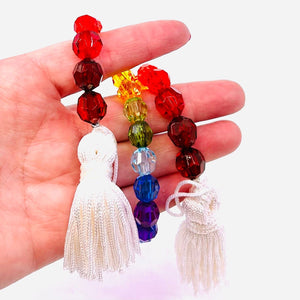 Add a touch of elegance to your home with this beautiful rainbow Crystal Tassel Ornament. Crafted from acrylic crystals, it will provide a vibrant, sophisticated look to your holiday decorations. It's the perfect decoration for the holidays or any season, and it can be used as a suncatcher, ornament or car charm.