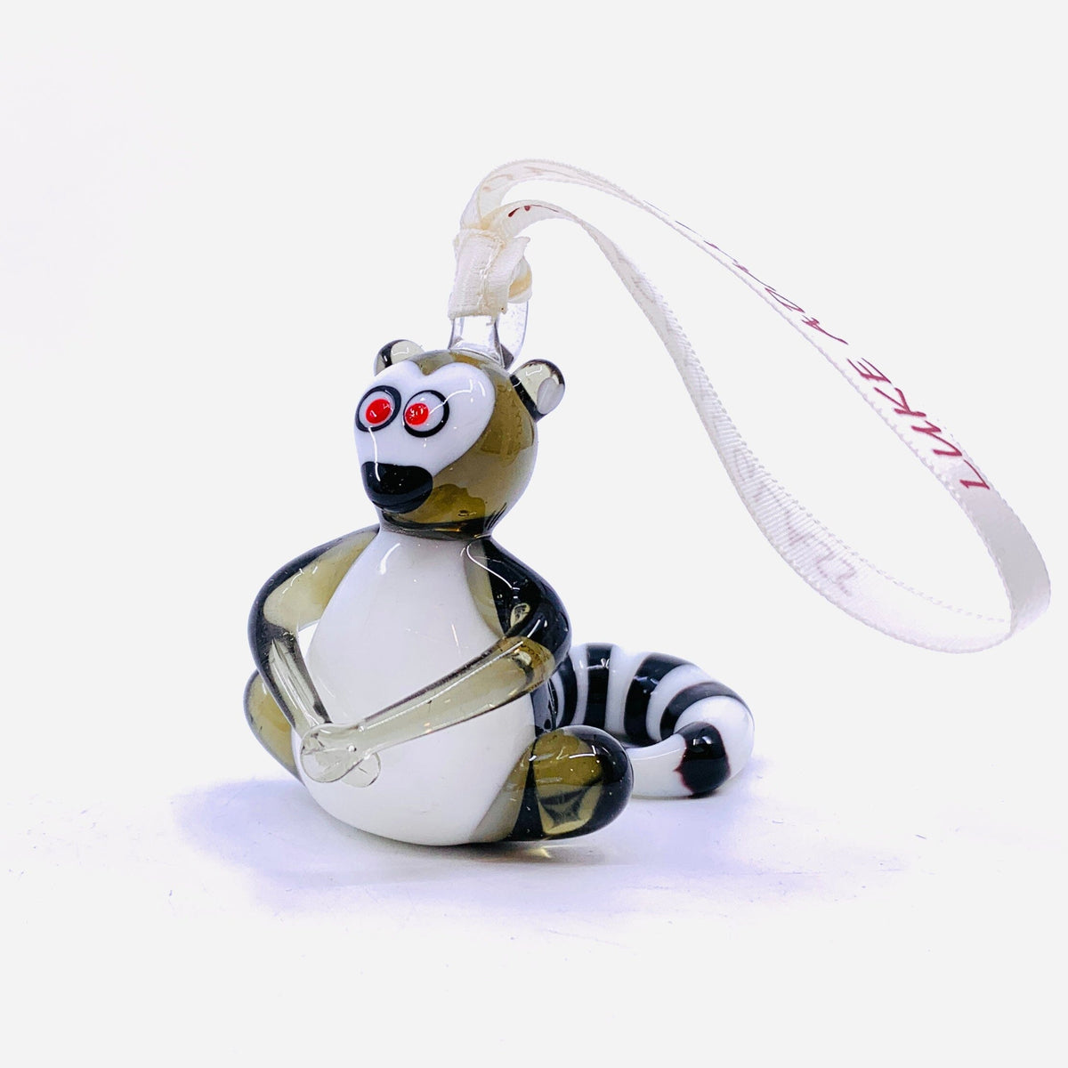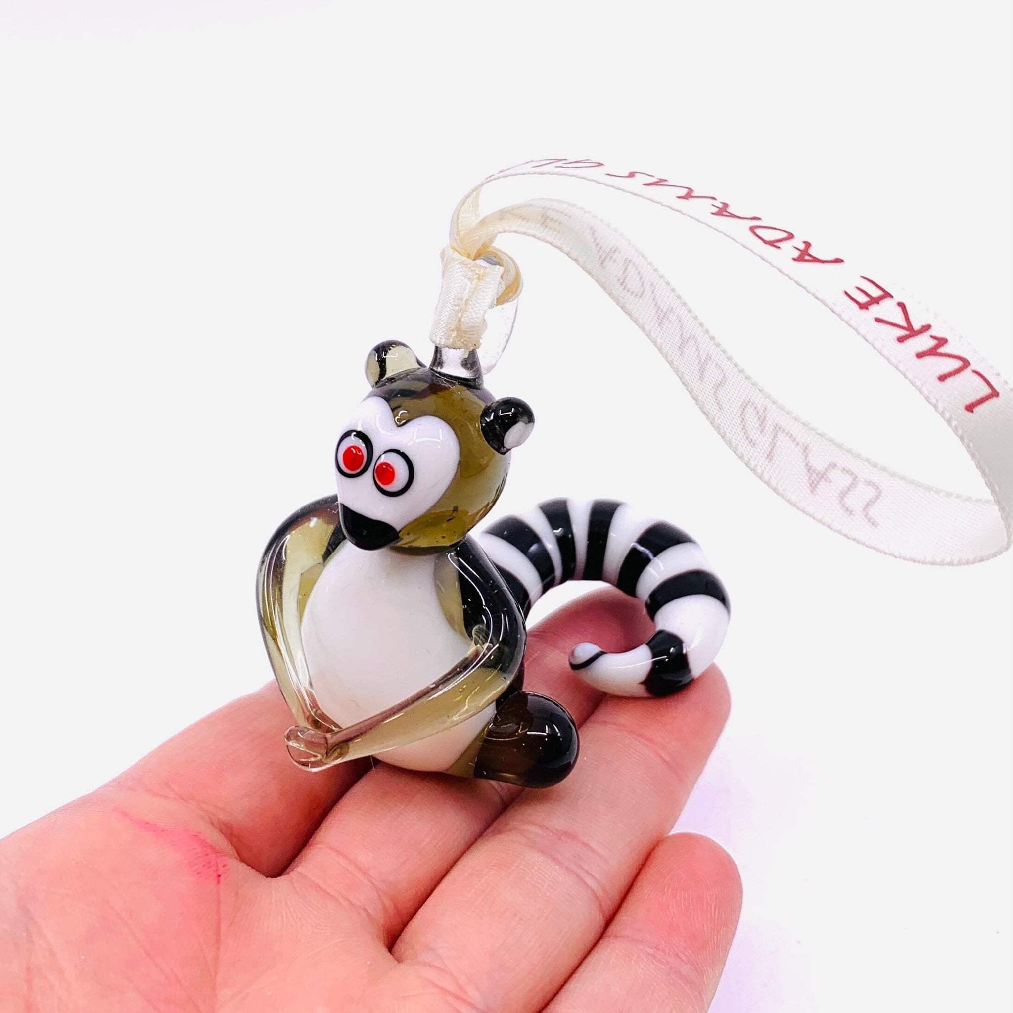 This beautiful hand blown glass ornament is the perfect addition to any holiday decor. The intricate craftsmanship of the design brings to life a wonderfully delicate lemur, making it a unique and eye-catching piece. A ribbon is included for hanging.