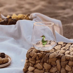 11 oz Tiny Animal Wine Glass, Green Ducky