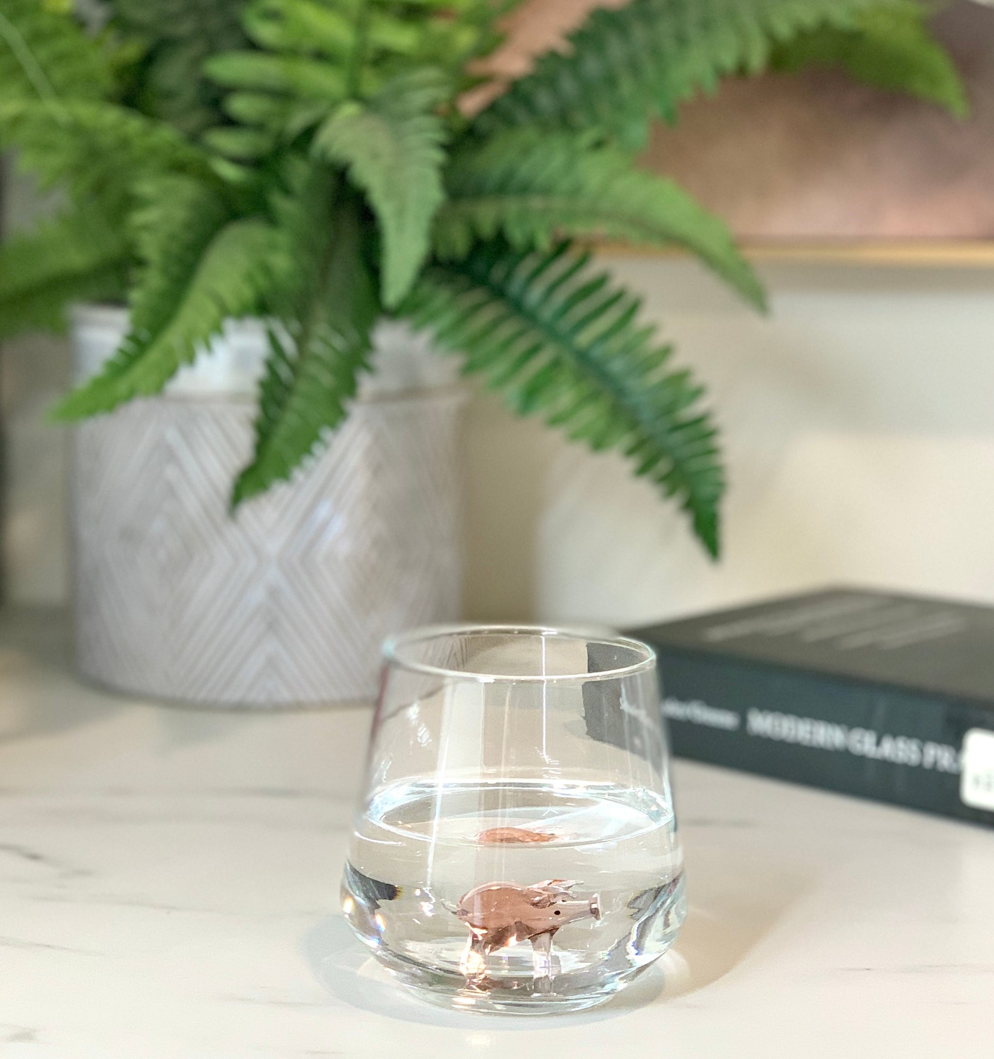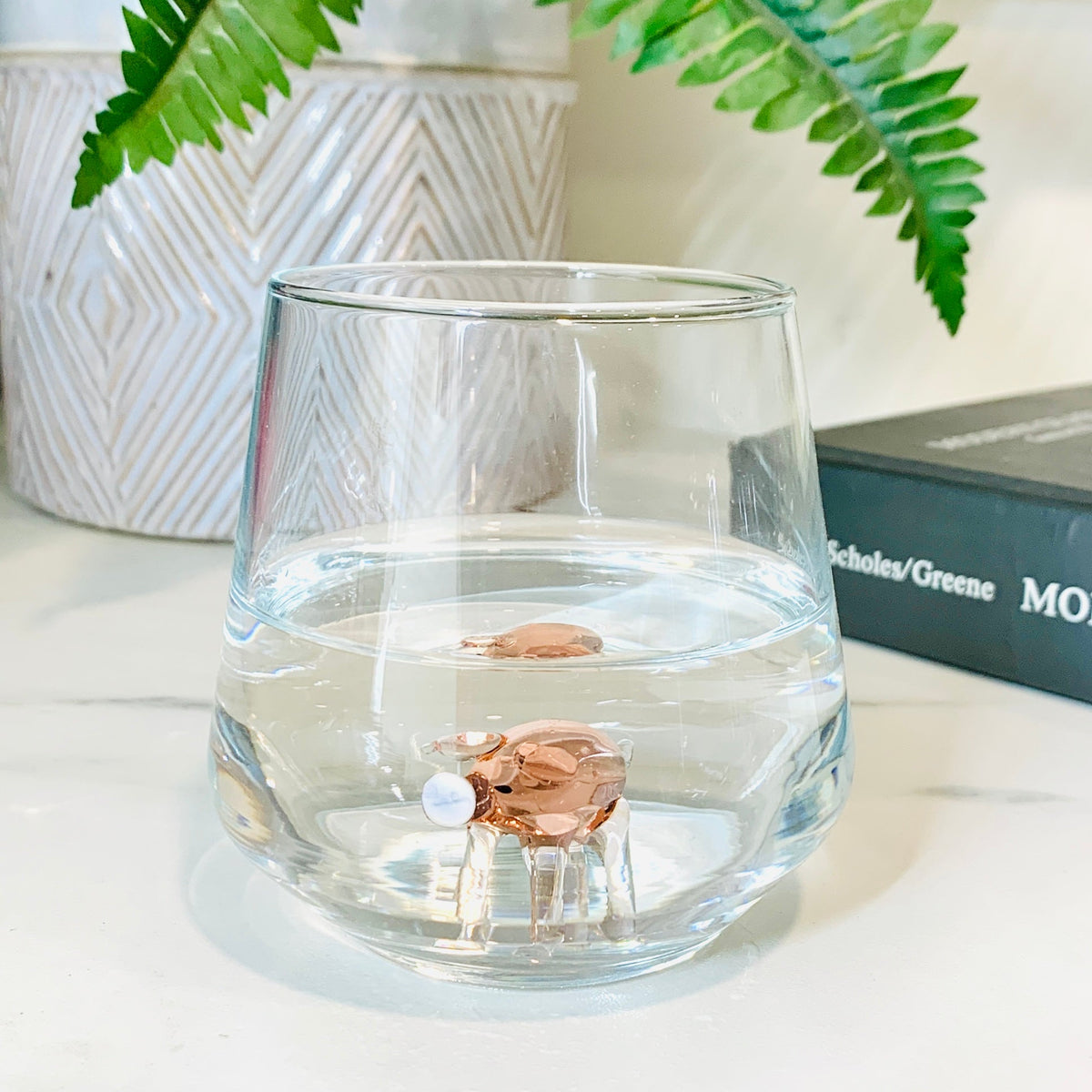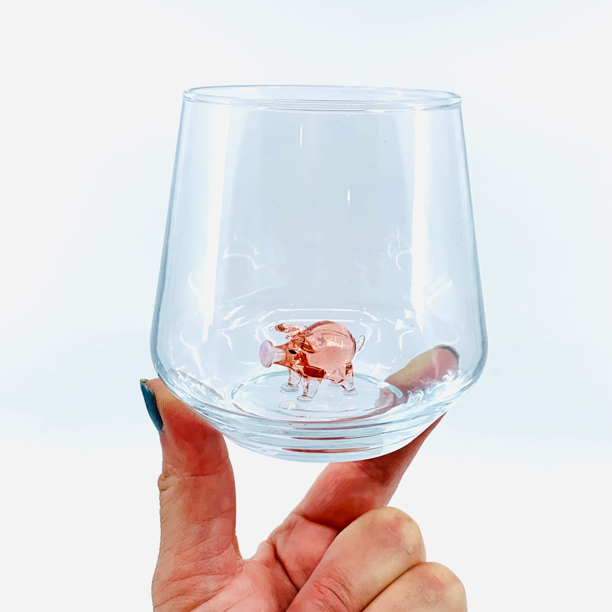 11 oz Tiny Animal Wine Glass, Pink Piggy