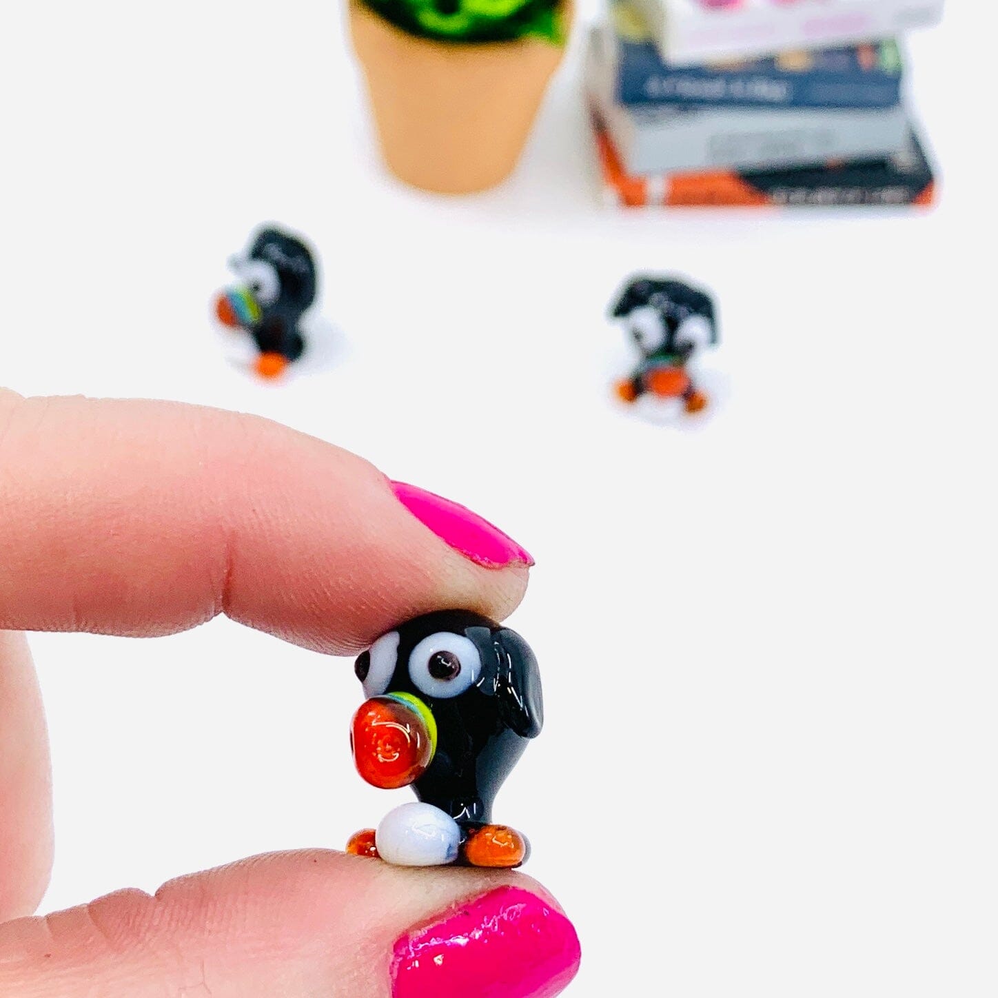 Make someone's day with this adorable tiny glass puffin! Add him to you or your friends miniature glass figurine desk buddy collection.
