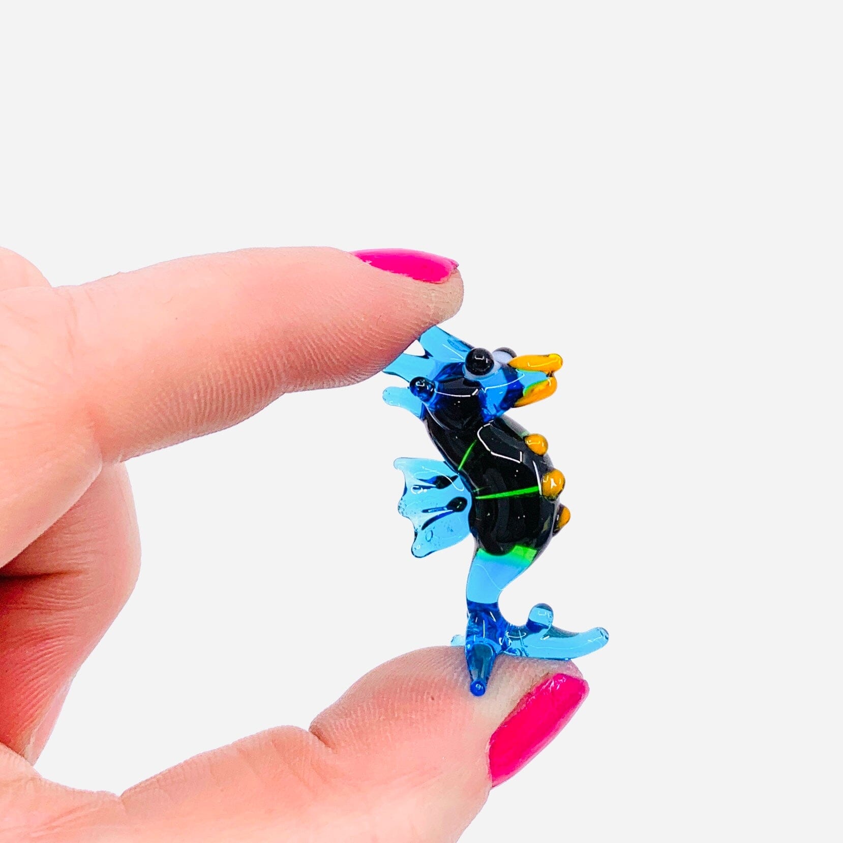 Make someone's day with this adorable tiny seahorse! Add him to you or your friends miniature glass figurine desk buddy collection.