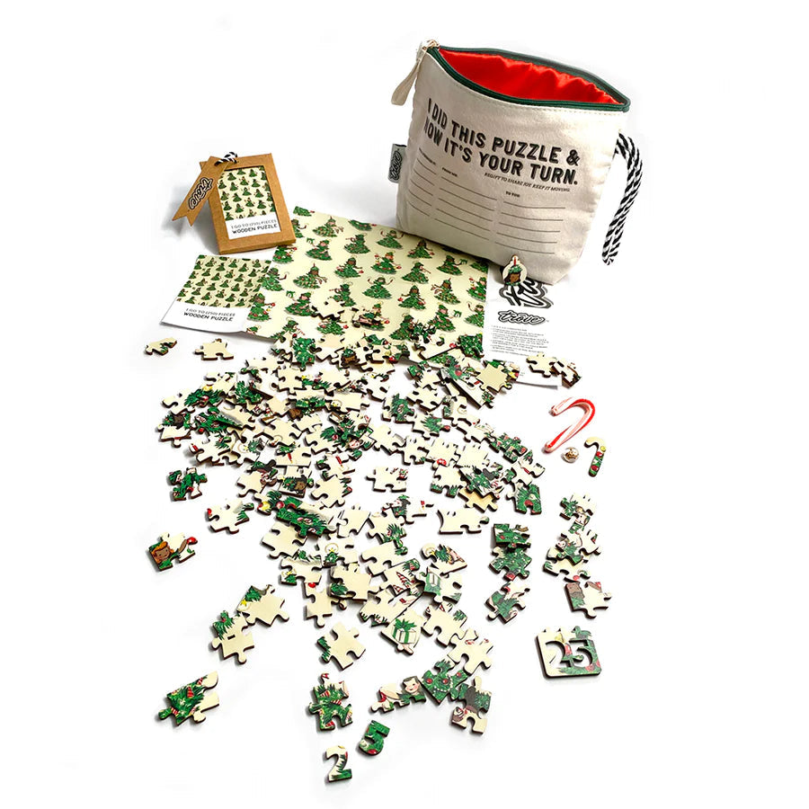 Re - gift to share joy. Keep it moving. These puzzles are self gift-wrapped and gift-tagged, allowing you to easily share with friends or family members after you complete them. We call the deluxe satin-lined canvas carrying pouch the Pass-It-on Pouch™. It not only serves as a gorgeous puzzle container, (A puzzle in a cardboard box? Never!) it also invites you to tag your gift in a unique way: Literally write your name and your puzzle completion date on the pouch itself, then finish with the recipient's name.
