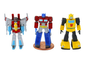 Transformers Generation 1, giant alien Autobots and evil Deceptions, robots capable of transforming into vehicles, first introduced in the 1980’s are now available in micro size!  Measuring only 1.25 inches tall, each Micro Action Figure has three points of articulation, and includes a replica of the original action figure blister card, for display and storage and display stand.  Collect all three retro styles – Optimus Prime, Bumblebee, and the evil StarScream.